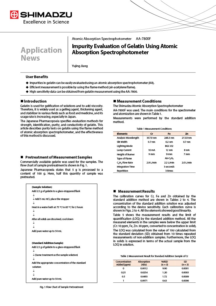 - Impurities in gelatin can be easily evaluated using an atomic absorption spectrophotometer (AA).