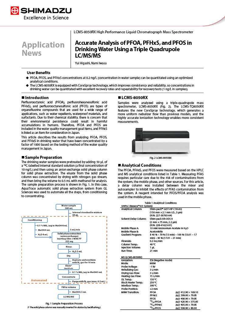 The LCMS-TQ RX series (LCMS-8060RX, LCMS-8050RX, and LCMS-8045RX) triple quadrupole high-performance liquid chromatograph mass spectrometers provide higher sensitivity, stability, and convenient operability.