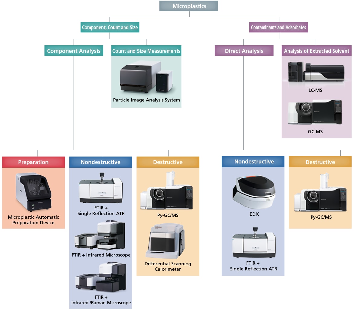 Microplastics are small pieces of plastics that sized typically μm scale, up to 5 mm. For living things, intaking them may cause a damage to their organs as well as latent possibility for piling toxic substances up in their body, that may affect us human beings because of bioaccumulation. We Shimadzu can offer you various solutions for microplastics, from pretreatment to qualification and quantification.