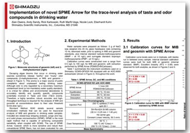 Odorants 2-Methylisoborneol (2-MIB) and Geosmin are the two major culprits behind public complaints on unpleasant tasting water. In this study, Standard Method 6040D was implemented for the analysis of 2-MIB and Geosmin employing SPME, methodological detection limits (MDLs), and recovery experiments were conducted. ....
