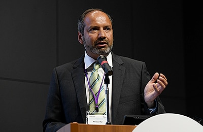 Following Dr. Ueda’s introductory remarks, Shuzo Maruyama, the General Manager of Shimadzu’s Analytical & Measuring Instruments Division, took to the stage. He introduced multiple examples of collaborations that have led to success, including groundbreaking research for the early detection of Alzheimer’s via blood plasma analysis, achieved through collaboration with Prof. Colin L. Masters from Melbourne University; an adrenal venous sampling (AVS) support system for primary aldosteronism developed in cooperation with Prof. Kei Takase from Tohoku University; and a cancer photoimmunotherapy method developed together with Hisataka Kobayashi from the National Cancer Institute (NCI). In showcasing this exciting research, Mr. Maruyama underscored his expectation for even more successful collaborations in the future.
