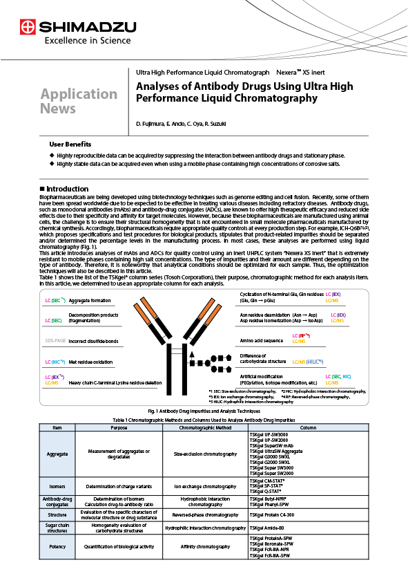 The analysis of proteins such as antibody drugs requires careful operation because a high-salt mobile phase sometimes corrodes the system. In addition, the adsorption of proteins to metal surfaces often results in poor chromatographic performance.