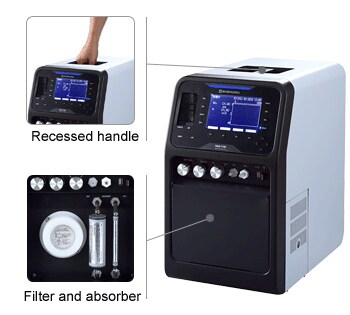 Consumables such as filters and the absorber are located at the front of the instrument to facilitate replacement.