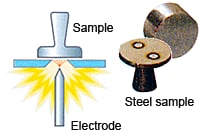 Optical emission spectrometry involves applying electrical energy in the form of spark generated between an electrode and a metal sample, whereby the vaporized atoms are brought to a high energy state within a so-called "discharge plasma".