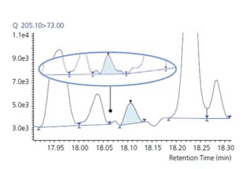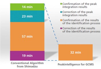 Peakintelligence for GCMS is equipped with new AI peak integration algorithms that significantly shorten the time needed for peak integration in the GC/MS or GC/MS/MS quantitative processing work sequence.*1