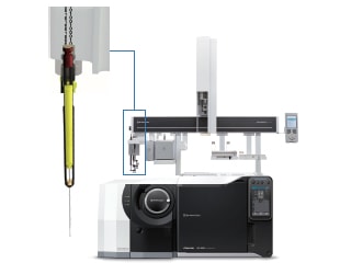 The AOC-6000 Plus Multifunctional Autosampler enables various syringes injections, including liquid injection, headspace (HS) injection, and solid-phase microextraction (SPME) injection. The automatic syringe exchange RTC (Robotic Tool Changer) function enables continuous sample injection using different syringes. By combining with the Twin Line MS system, different analytical methods such as SPME and HS can be performed continuously without changing the column.