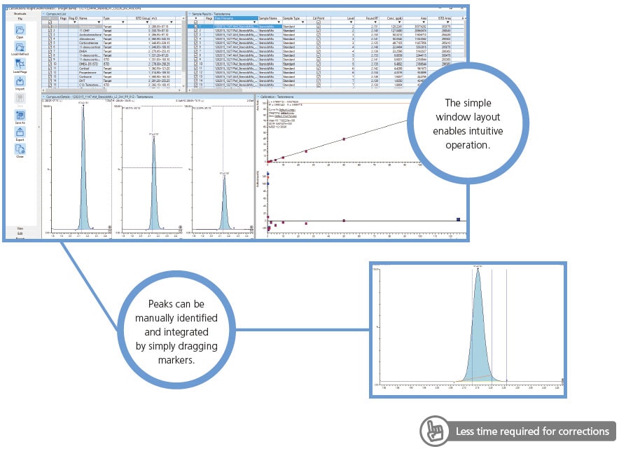 Configurable layouts can be conveniently displayed on multiple monitors. Switching quickly between sample centric and compound centric views enables analysts to work according to their preference.
