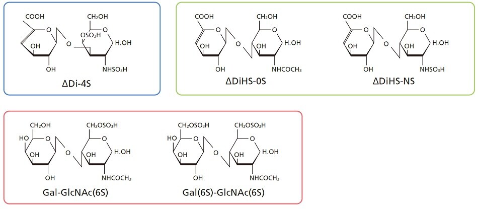 The study of Glycosaminoglycans (GAGs) or mucopolysaccharides, and enzymes involved in GAG metabolism is an important aspect of clinical research related to lysosomal storage. Quantitation of GAGs in bones, joints, the brain, heart, lungs, and other organs is a useful tool in this field of study. GAGs can be quantitated by measuring the sulfated disaccharides produced by enzymatic degradation of GAGs. The research group led by Hironori Kobayashi of Shimane University Hospital, Clinical Laboratory Division, has been instrumental in the development of methods for the detection of sulfated disaccharides by LC/MS.