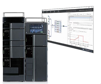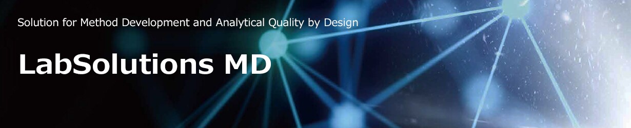 LabSolutions™ MD improves method development efficiency by taking an Analytical Quality by Design (AQbD) approach. This software efficiently develops highly reliable analysis methods by configuring mobile phases, columns, and other parameters using an analysis function that automatically generates analysis schedules with the experimental design method and a data analysis function that plots a design space and predicted chromatogram.
