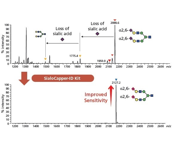 SialoCapper™-ID Kit reliably stabilizes sialic acid residues, enabling linkage isomer discrimination.