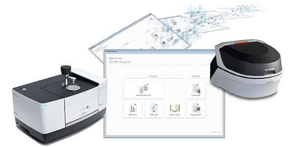 EDXIR-Analysis software is specially designed to perform qualitative analysis using data acquired by an energy dispersive X-ray (EDX) fluorescencespectrometer and a Fourier transform infrared spectrophotometer (FTIR). This software is used to perform an integrated analysis of data from FTIR, which is excellent at the identification and qualification of organic compounds, and from EDX, which is excellent at the elementary analysis of metals, inorganic compounds and other content. It then pursues identification results and the degree of matching. it can also be used to perform EDX or FTIR data analysis on its own. The library used for data analysis (containing 485 data as standard) is original to Shimadzu, and was created through cooperation with water supply agencies and food manufacturers. Additional data can be registered to the library, as can image files and document files in PDF format. It is also effective for the linked storage of various types of data as electronic files.