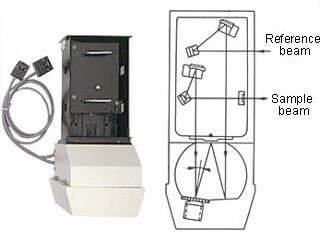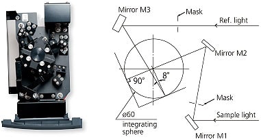 This attachment is used for the measurement of diffuse and spealar reflectance. Transmission of liquid and solid samples can also be measured.