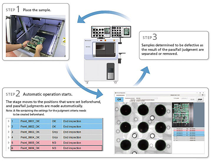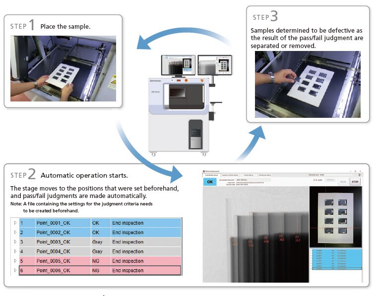 Adding the detachable rotation/ inclination unit enables X- ray fluoroscopy of small parts from a number of directions, reducing omissions in inspections.