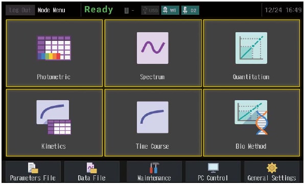- The UV-1900i Plus on-screen user interface includes large, easy-to-see icons deployed on a black background, so the instrument settings are evident at a glance. In addition, the large, easy-to-see icons improve intuitive understanding, which enables users to quickly become familiar with the operations. Furthermore, the user interface is designed to minimize transitions between windows, so users do not get confused during the operations. The system also features a faster response speed by adopting a new CPU.