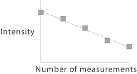 - Gradually decreasing: There is a memory effect (carryover) from the previous sample or the sample introduction system or cleaning liquid may be contaminated.