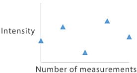 - Random variance: Blank samples usually display this type of variance due to low ion intensity. Consistent measurements as described in 1 are ideal for solutions that contain analyte elements. When random variance is observed in a solution that contains analyte elements, check whether the measurement sensitivity is sufficient at that concentration. If correcting against an internal standard, check if the variance is also present with the internal standard element and determine whether the variance is caused by the analyte element delivery or the internal standard element delivery.