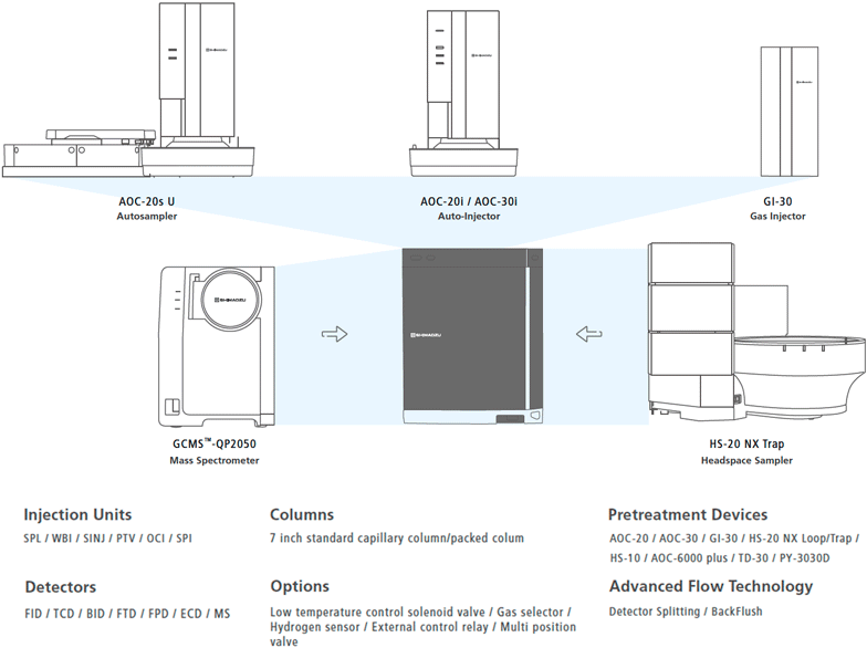 A flexible system configuration is supported. Existing analytical methods and consumables can be seamlessly transitioned to the Brevis GC-2050 without being restricted by device configurations.