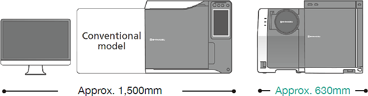 This product achieves a space saving width of just 350 mm. It is 35 % narrower in comparison to the width of the existing Nexis GC-2030.