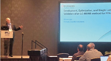 During the conference proceedings. Shimadzu provided information about PFAS, ethylene oxide (EtO), and other topics in oral seminars,roundtable panels, and hosting vendor seminars. For PFAS, Shimadzu developed a single LC-MS/MS method that can be used for the 11 food categories addressed in AOAC SPMR 2023.003 and discussed factors that should be considered for PFAS analysis. The topic generated the most interest as Shimadzu was one of only 4 submitters of methods to the SMPR. Shimadzu routinely participates in AOAC by submitting analysis methods, participating in working groups and advisory panels and presenting at the annual conference.