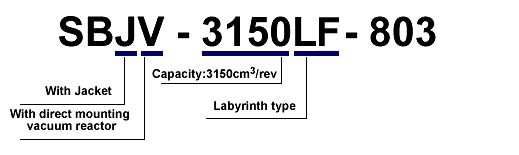 - SBJ series pumps are available in 4 model types to meet a variety of applications, in capacities ranging from 45 cm3/rev to 25000 cm3/rev. Easily find a pump that satisfies your requirements.