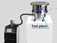 - Wrap the test piece with hood. Vacuum inside of the test piece and inject helium gas in the hood. If there is any leak point, helium will be detected from inside of the test piece.