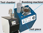 - This method is used to test leak of airtight parts. Inject helium gas in test piece with a bombing machine. Put the test piece in a test chamber of a helium leak detector and vacuum the chamber. If there is any leak, helium will leak from inside the piece and be detected.