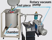 - Put the test piece, which has been filled with helium gas, in a bell jar or a chamber.