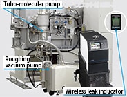 - For a huge chamber or test piece, use large roughing pumps to vacuum and detect helium gas exhausted.