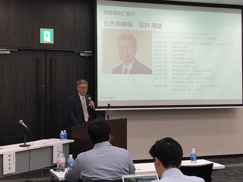 In October 2024, Director Hanai participated as a speaker at a Sustainability Management Briefing held for institutional investors. Speaking from the perspective of an Outside Director, Director Hanai shared insights on Shimadzu's management challenges and initiatives, including efforts to improve capital efficiency and enhance development capabilities.