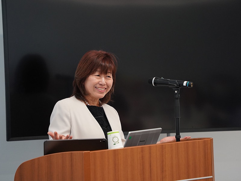 In January 2025, Director Hamada delivered a presentation during the Global Manager Training program for newly appointed managers of overseas Group companies. In her speech, she emphasized the importance of driving transformation through the pursuit of diversity and sharing best practices.