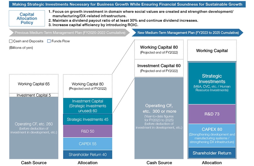 Under the medium-term management plan, we aim to generate a cumulative total of 300 billion yen in operating cash flow over three years, before deducting development investments. These funds will be appropriately allocated to development investments, capital expenditures, and strategic investments that drive growth, with timing optimized to maximize their effectiveness.