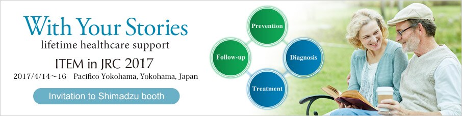 Under the management principle of Realizing Our Wishes for the Well-being of Mankind and the Earth, Shimadzu has continued to evolve the medical imaging technology for many years and contribute to diagnosis and treatment. And by applying another core technology, Analytical technology to the healthcare field, we have started a step towards prevention and follow-up of prognosis. Prevention, Diagnosis, Treatment and Follow-up, in order to achieve the wish for a healthy life, Shimadzu aims to make a further contribution in the healthcare field with medical imaging and analytical technology.