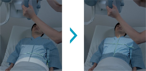 The live view obtained by the Live View camera, along with SID and X-ray tube angles, can be displayed on a second monitor. Supports precise positioning and contributes to reducing the frequency of retakes.