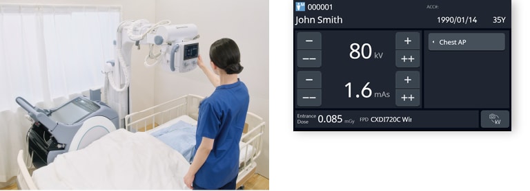 Communication with the generator is possible due to the built-in digital unit. By simply selecting exposure protocol, the generator's exposure conditions are automatically set. Additionally, managing exposure records and dose information is made easy.