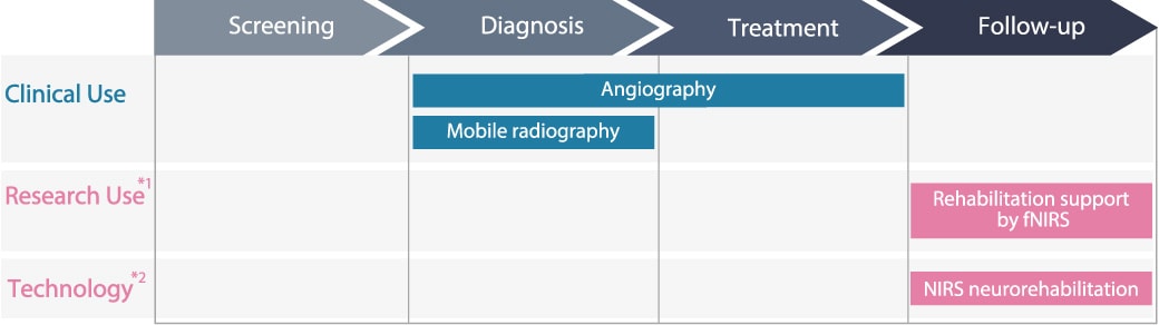 Shimadzu Angiography and Mobile Systems offer a variety of applications that can be quickly launched and responded with low-dose & high-quality images, and excellent operability to support rapid and accurate diagnosis & treatment, which is significant in emergency medicine. New technology has also been developed to help rehabilitation during follow-up so that patients can return to their everyday life as soon as possible after surgery.
