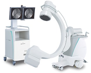 OPESCOPE ACTENO, a mobile C-arm imaging system, realizes free and easy positioning and quick image display under fluoroscopy, providing optimal performance for emergency room needs. The fully counter-balanced C-arm provides extra-light, quick movements, and positioning. This intuitive operability supports fast and accurate studies.