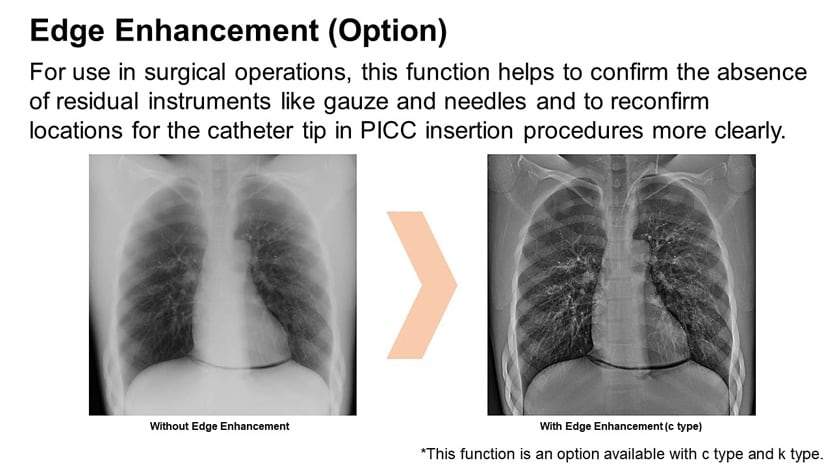 Smart DSI aids the detection of objects retained in the body by enhancing regions of the image that potentially show surgical needles, gauze with radiopaque threads, and other foreign objects.