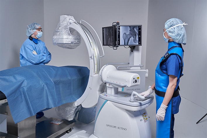 OPESCOPE ACTENO FD type, the mobile C-arm imaging system, provides free and easy positioning that achieves performance to meet the demands of the operation room and emergency room. The high-resolution FPD takes Surgical Imaging to new levels.