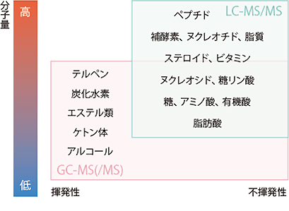 - Enables the analysis of high polymer compounds, hydrophilic compounds, and nonvolatile metabolites, which are challenging to analyze using GC-MS (/MS).
