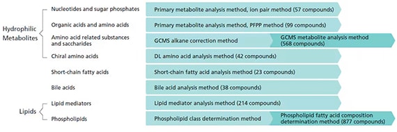 Various measurement conditions enable the comprehensive analysis of more than 2000 metabolites