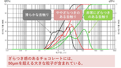 In food products, the particle size distribution is said to affect the feeling on the tongue, the crunchiness, and other aspects of food texture. The human tongue is very sensitive, and it is said to be able to recognize particles just a few dozen μm in size or larger on contact. Particle size distribution is an important factor in food product development. For example, depending on the type of food, a smooth texture can be created by making the particles smooth and uniform. Conversely, subtle textures can be created by making the particles large and uneven. The SALD-2300 laser diffraction particle size analyzer can measure a wide range of particles, from 17 nm to 2.5 mm. It is used in food product development and quality control to quantitatively assess the size of particles related to food texture.