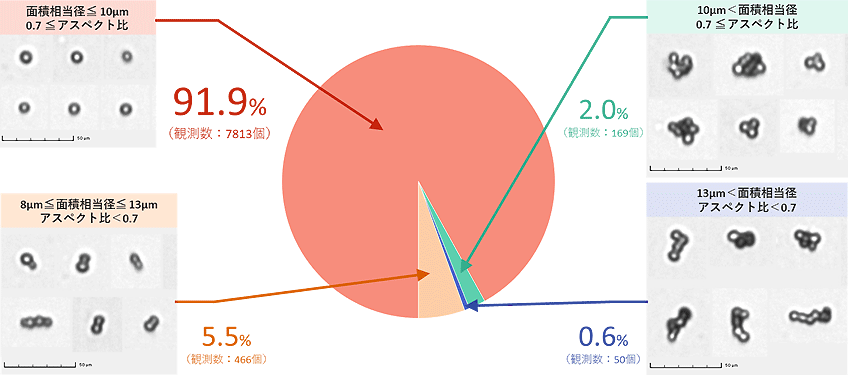 This single system can perform particle image analysis, particle shape analysis, particle size distribution measurements, contaminant detection, and number concentration measurements, normally measured with dedicated devices such as particle distribution analyzers and microscopes.