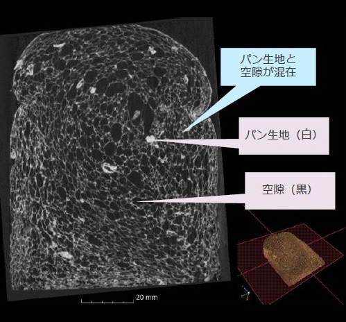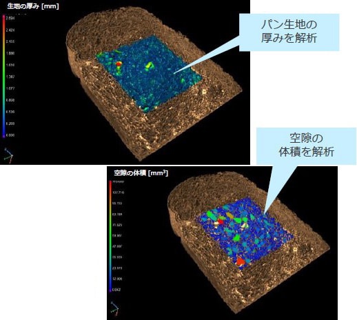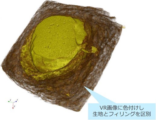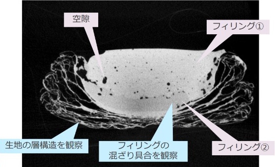 When evaluating food textures, a deeper analysis can be performed by understanding their internal structure rather than just using sensory evaluations, texture analyzers and fluid measurement instruments to evaluate physical properties. X-ray CT systems are useful for observing the internal structure of foods such as breads, which have a complicated porous structure, and foods packed with fillings in which multiple substances are blended. This is because such systems can visualize the internal 3D structure of the object without damaging it.