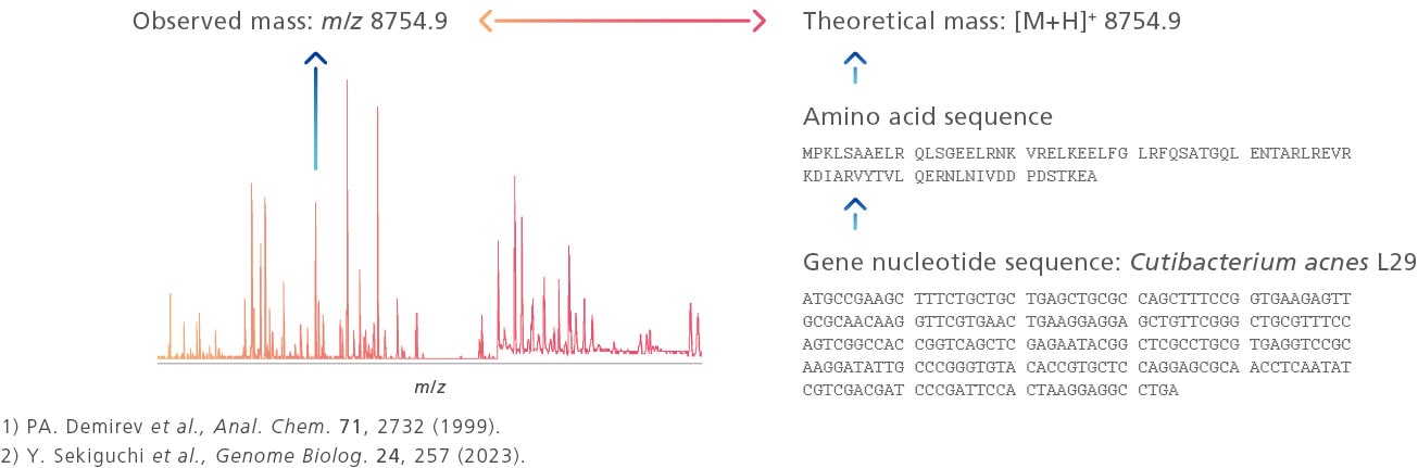 In recent years, the demand for identifying microorganisms has increased worldwide due to heightened hygiene awareness, the proliferation of chilled foods, and the emergence of antibiotic-resistant bacteria. In clinical and food microbiology testing, the "fingerprint method" identifies microorganisms based on measurement results obtained from MALDI-TOF MS. This method provides results in approximately three hours, including the pre-treatment of microbial isolates (cells), MALDI-TOF MS measurement, and data analysis; however, the database is generally restricted to approximately 5,000 well-known species, which poses challenges for identification accuracy and limits its applications in a wide range of fields in microbiology.