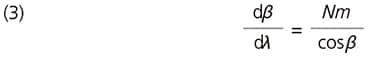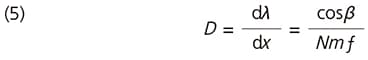The way in which the diffraction angle λβ behaves when light composed of different wavelengths is directed at a grating is an important point when considering the separation of light into its components. If the incident angle α is regarded as a constant, differentiating both sides of equation (2) with respect to λ gives the following: