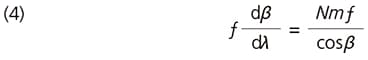 When ƒ·dβ = dx, inverting both sides of equation (4) gives the following: