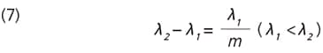 The range for which there is no overlapping is called the grating's "free spectral range." If the following equation is satisfied, mth-order light with wavelengths in the range λ1 to λ2 can be used without overlapping: