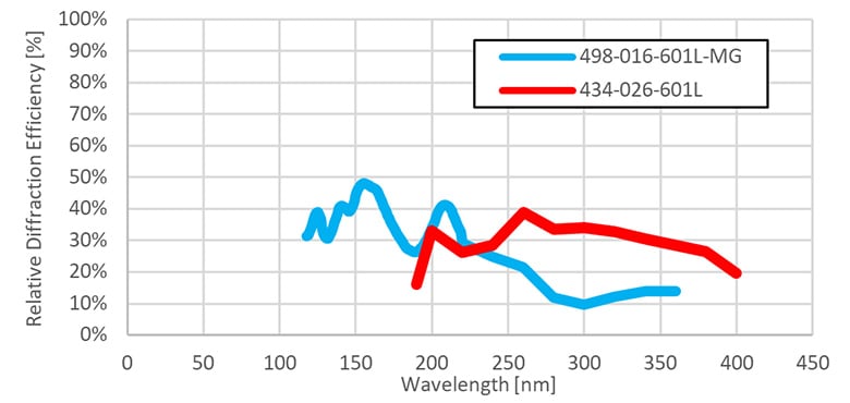 | Relative efficiency (first-order light, non-polarized, at Littrow mounting) |