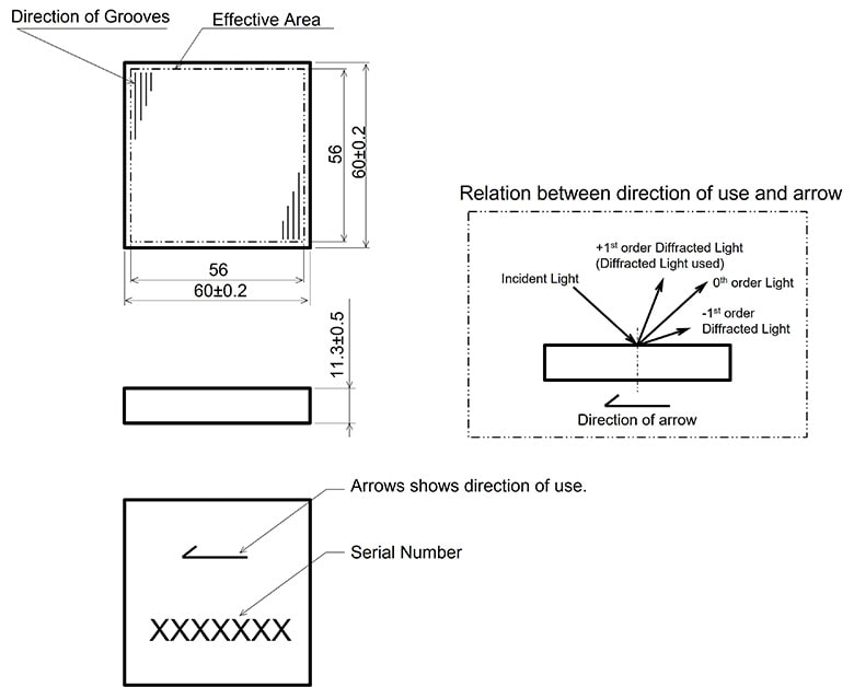 - The grating grooves are produced by a holographic exposure method. Using this method ensures that the amount of stray light due to periodic errors is much less than mechanically ruled gratings.