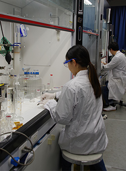 This laboratory conducts research on the synthesis and physical properties of various materials, ranging from low molecular weight to polymeric substances, including liquid crystals, while maintaining an optimal laboratory environment. As part of our renovation efforts, our primary goal was to improve the energy efficiency of the laboratory by installing fume hoods that automatically adjust the amount of exhausted air based on the size of the front opening (sash height). Before the renovations, outside air was drawn into the laboratory without conditioning, and experiments were consequently conducted in uncomfortable conditions (cold in winter, hot in summer). After installing the new fume hoods, the most significant improvement has been the ability to effectively air condition every space in the laboratory, facilitated by Shimadzu RIKA’s air supply and exhaust control system. Furthermore, the fume hoods were equipped with built-in scrubbers that can switch between dry and wet filters depending on the experimental requirements, creating a more suitable environment for each experiment.